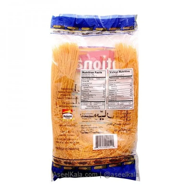 رشته قهوه ای ناسیونال یا رشته سویا که به نام های شعیریه، ورمیشل و سیوه ای نیز شناخته می شود، از گندم درست شده است.